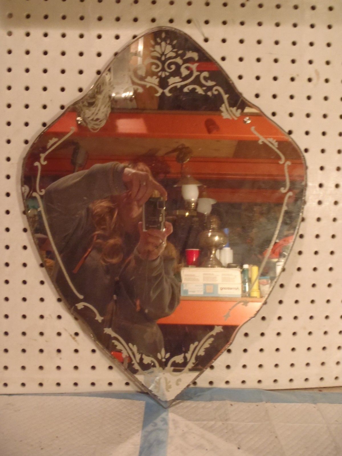 Antique Reversed Etched Bevel Edge Wall Mirror
