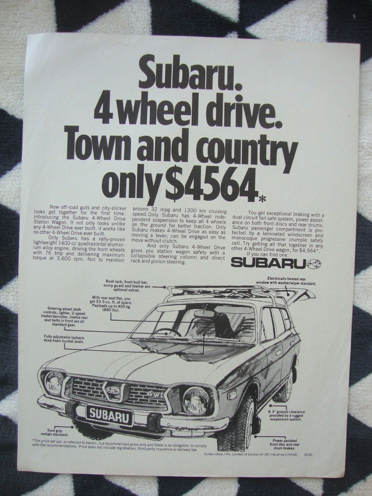 Title (ebay affiliate link): 1976 Subaru 4WD Town & Country Aussie Original Magazine Advertisement