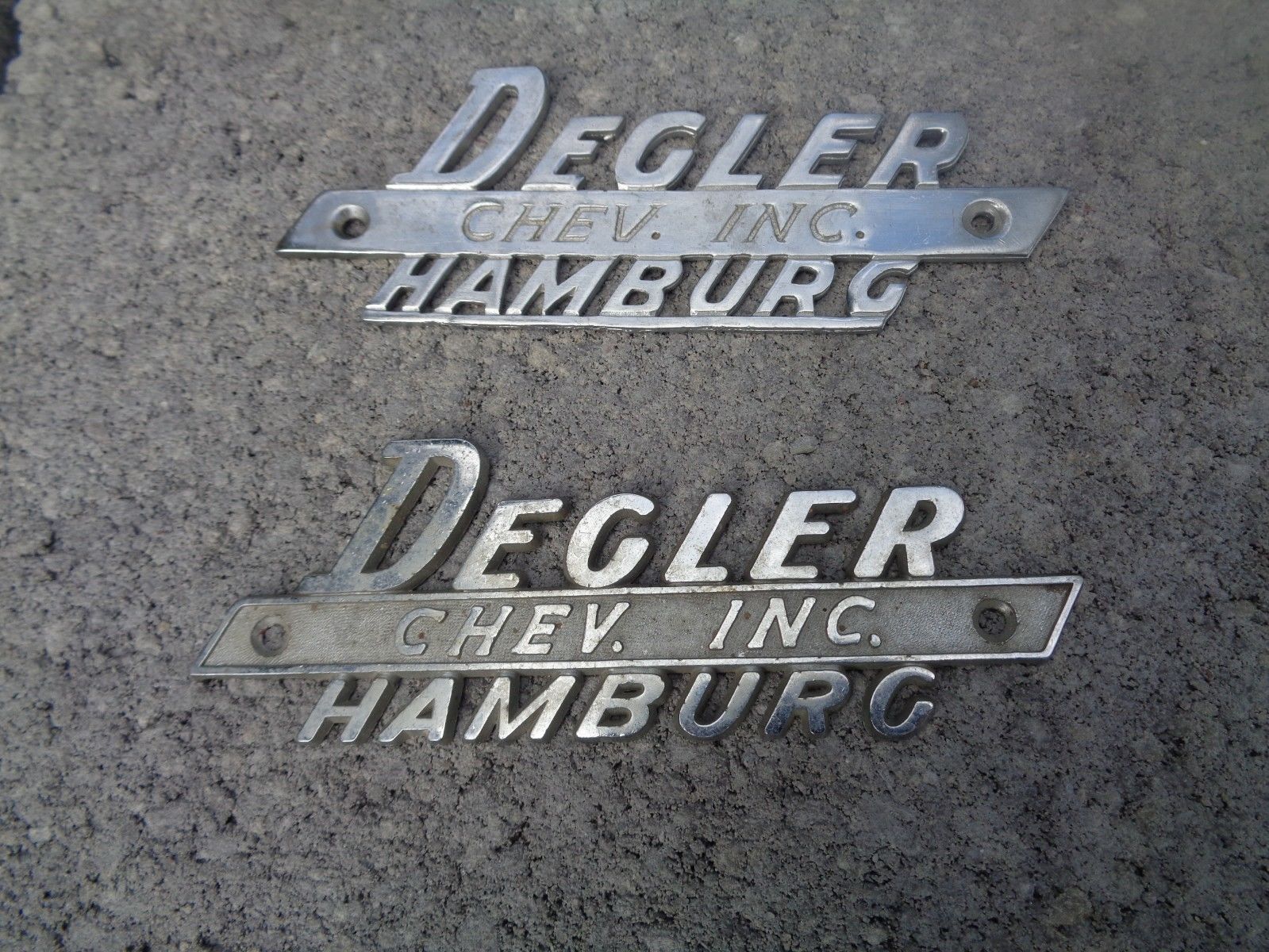 VINTAGE LOT OF 2 ADVERTISING CAR TRUCK EMBLEM DEGLER CHEVROLET INC HAMBURG PA