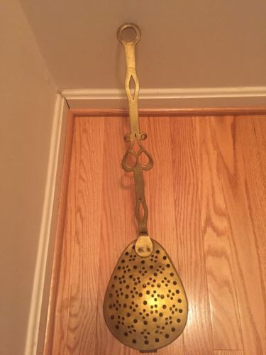 Antique Brass Bed Warmer Chestnut Roaster 16 Long Hinged Top Brass