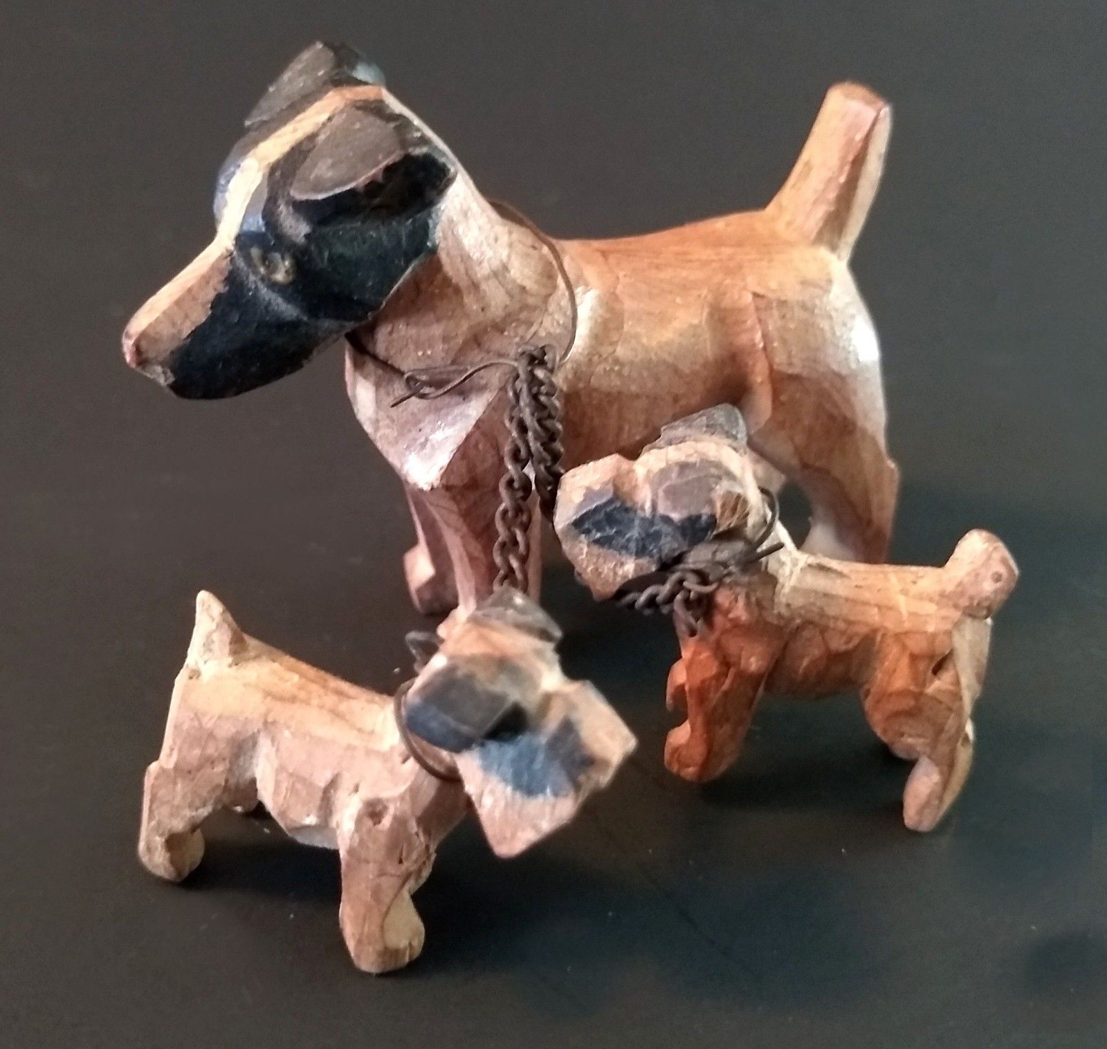 Vintage Carved Wood Dog Mini Group 3-pc set JACK RUSSELL TERRIER & PUPS (Anri?)