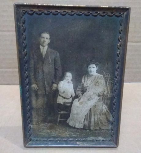Unique Antique Brass 4.5" x 6" Pic & Picture Frame. Mother, Father & Child! LOOK