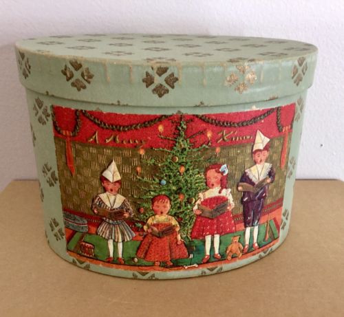 Vintage Christmas Wallpaper Oval Bandbox - Dixie Rose