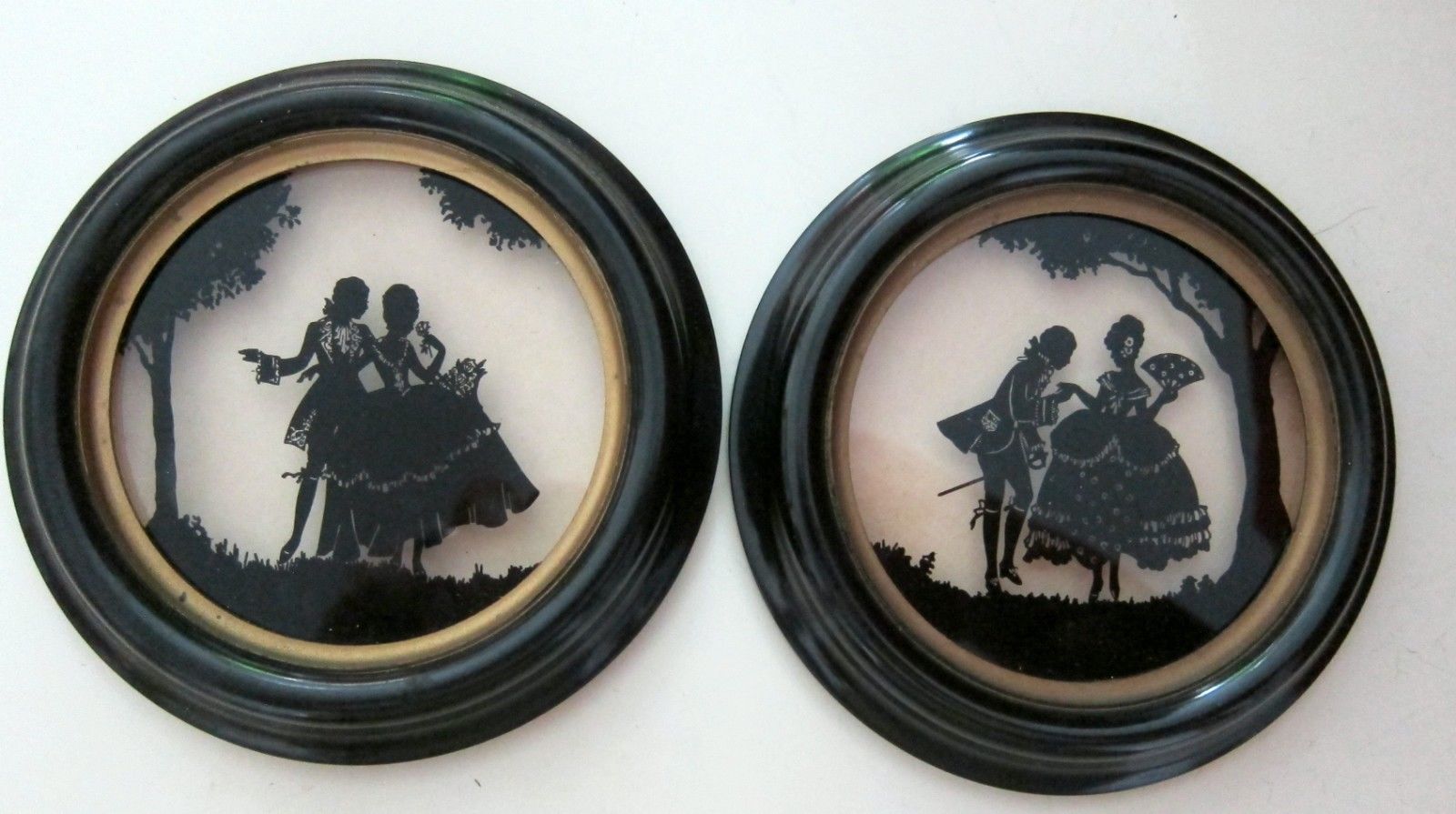 Title (ebay affiliate link): 2 ANTIQUE FRAMED HAND CUT OUT SILHOUETTE WHEN LOVE WAS YOUNG VICTORIAN COUPLE