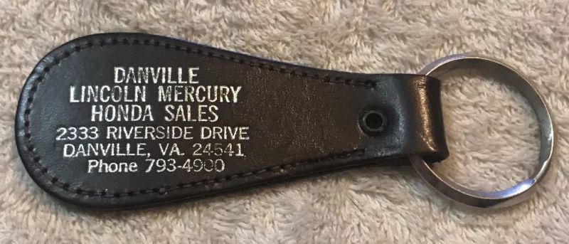 Title (ebay affiliate link): Vintage Danville Lincoln Mercury Honda Sales Danville, Virginia Leather Keychain