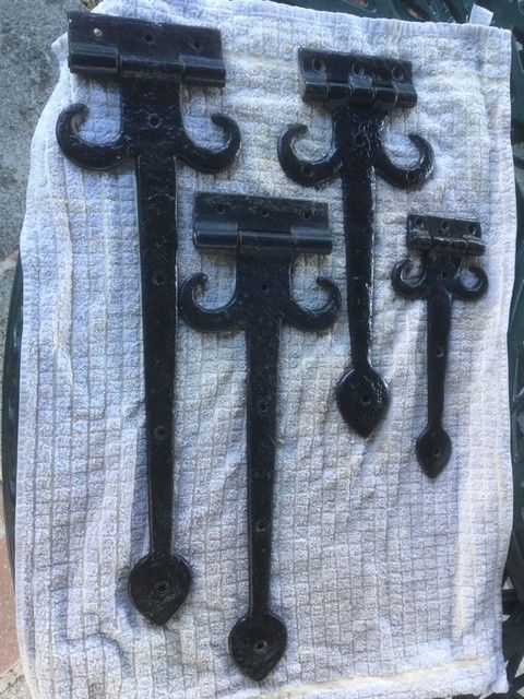 antique door furniture, black metal, ornate, including hinges, handles, etc