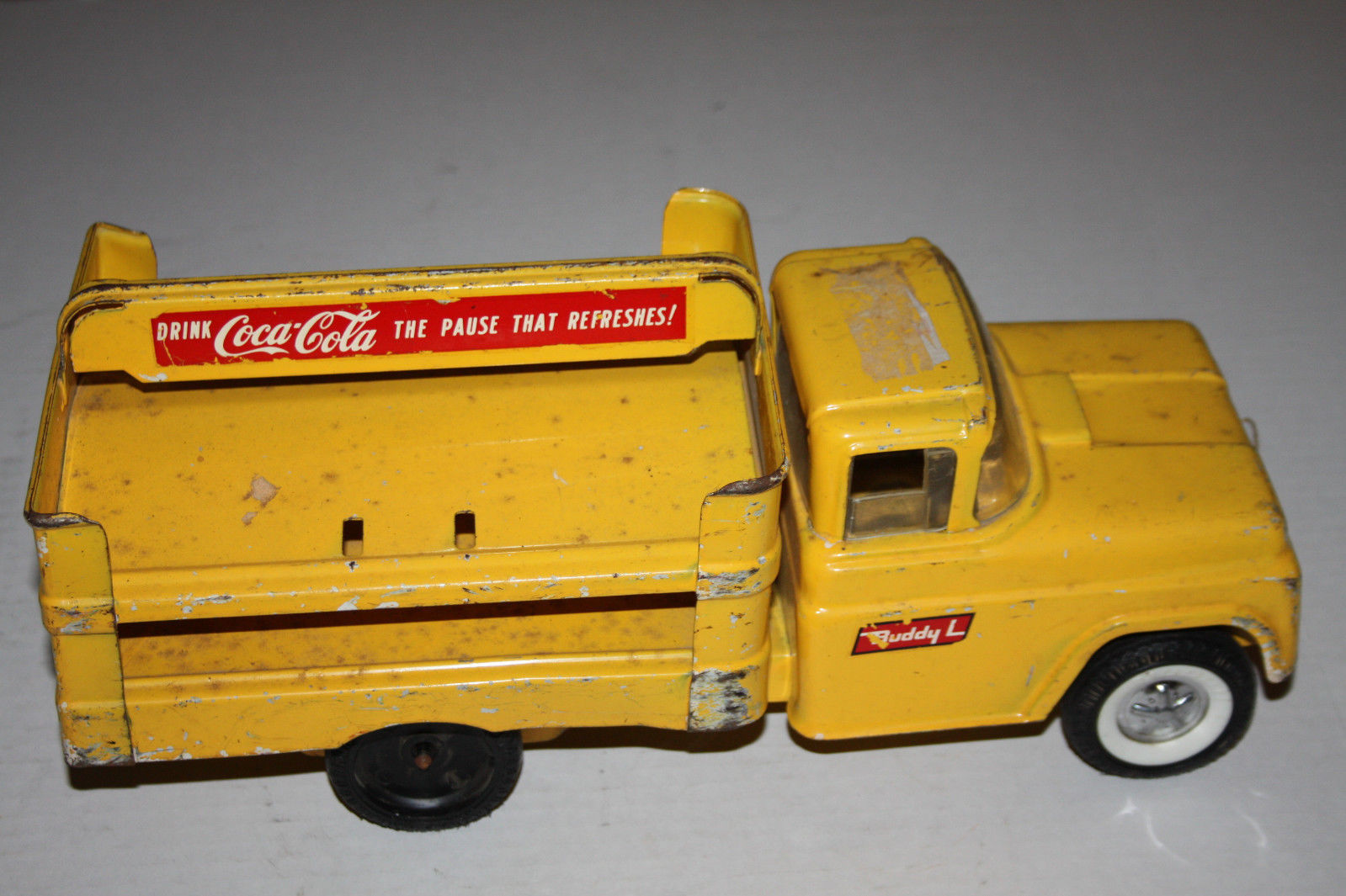 Title (ebay affiliate link): Vintage Buddy L Pressed Steel Coca Cola Yellow Toy Truck