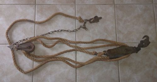Title (ebay affiliate link): Vintage Block and Tackle Pully with Rope - Rustic Metal Display - Fence Puller