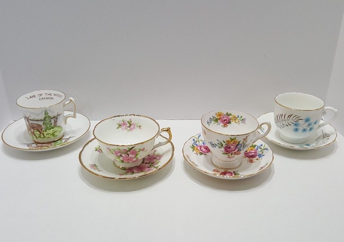 Title (ebay affiliate link): Vintage Floral Tea Cups and Saucers Bone China Made in England Lot of 4