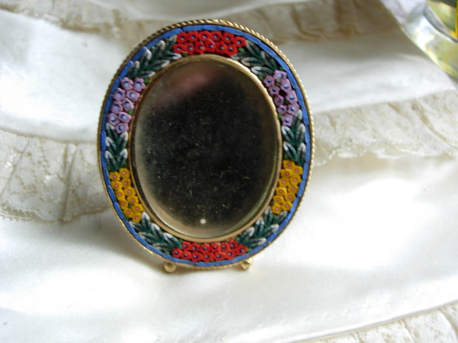 Title (ebay affiliate link): VINTAGE ITALIAN SIGNED ITALY VENETIAN MOSAIC OVAL FLORAL PICTURE FRAME FOOTED