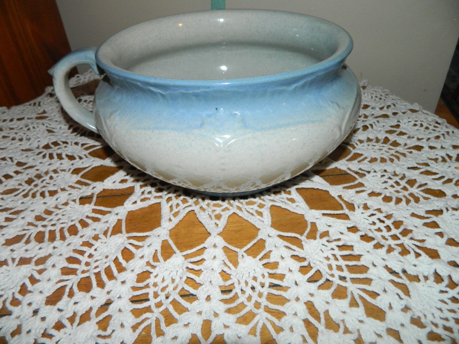 ANTIQUE BLUE AND WHITE STONEWARE CHAMBER POT