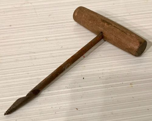 Title (ebay affiliate link): Vintage Wooden "T" Handle Gimlet Screw Drill Point 4"