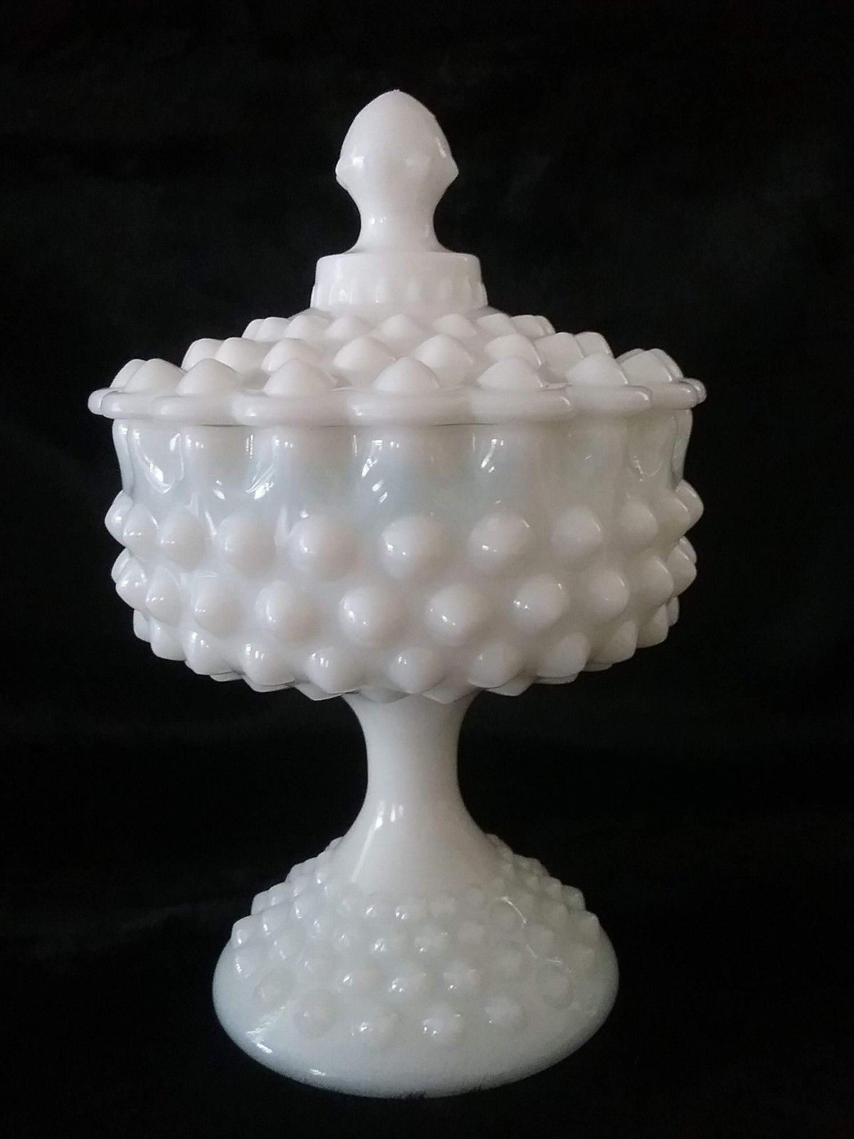 Title (ebay affiliate link): Vintage 1950''s Fenton White Hobnail Milk Glass Footed Compote Candy Dish & Lid