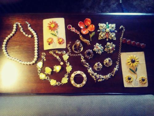 Title (ebay affiliate link): Vintage Costume Jewelry Lot Rhinestones Enamel Crown Trifari Milk Glass Signed