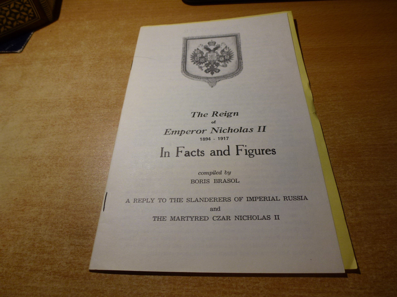 Title (ebay affiliate link): 1975 Book THE REIGN OF EMPEROR NICHOLAS II IN FACTS AND FIGURES B. BRASOL