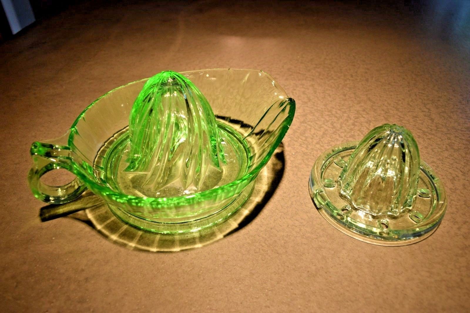 Title (ebay affiliate link): VINTAGE 8" LARGE GREEN DEPRESSION VASELINE URANIUM GLASS REAMER JUICER + BONUS
