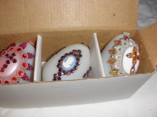 Title (ebay affiliate link): Three Vintage Embellished Bejeweled Milk Glass Easter Eggs