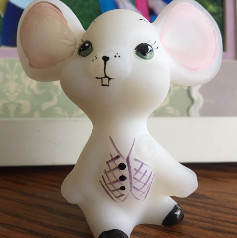 FENTON MILK GLASS HAND PAINTED MOUSE - FGS 80''S. Signed