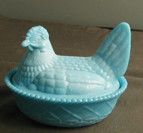 Title (ebay affiliate link): VINTAGE CHICKEN HEN ON NEST - BLUE MILK GLASS - BASKET STYLE BASE - 5" L - sb