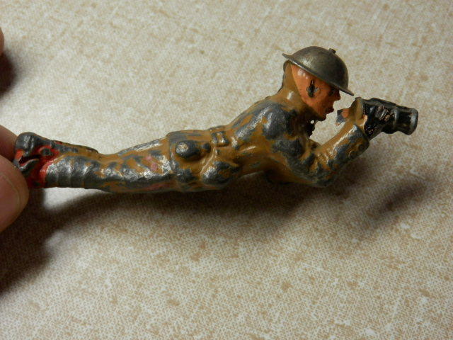 Vintage Manoil Barclay Lead Toy Soldier Laying on Ground with Binoculars