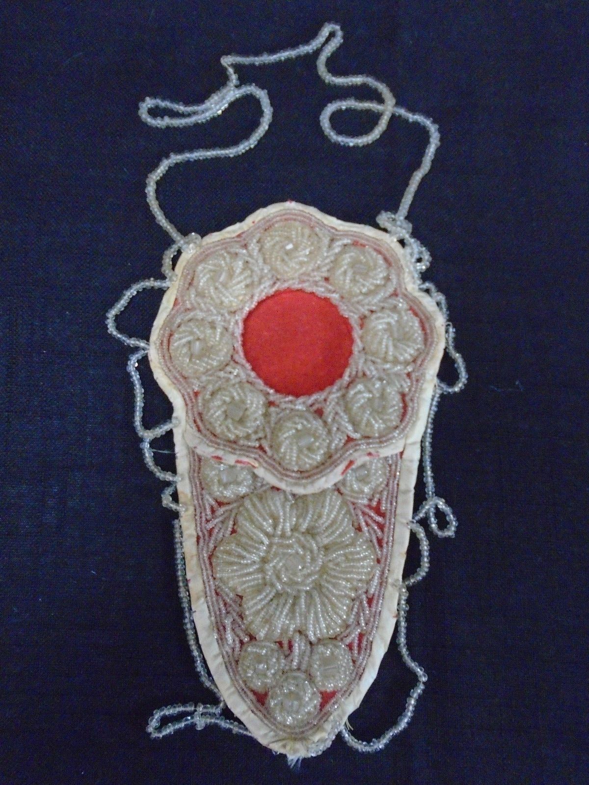 Title (ebay affiliate link): Antique Edwardian Iroquois Crystal Beaded Whimsy Beadwork Hanging Picture Frame