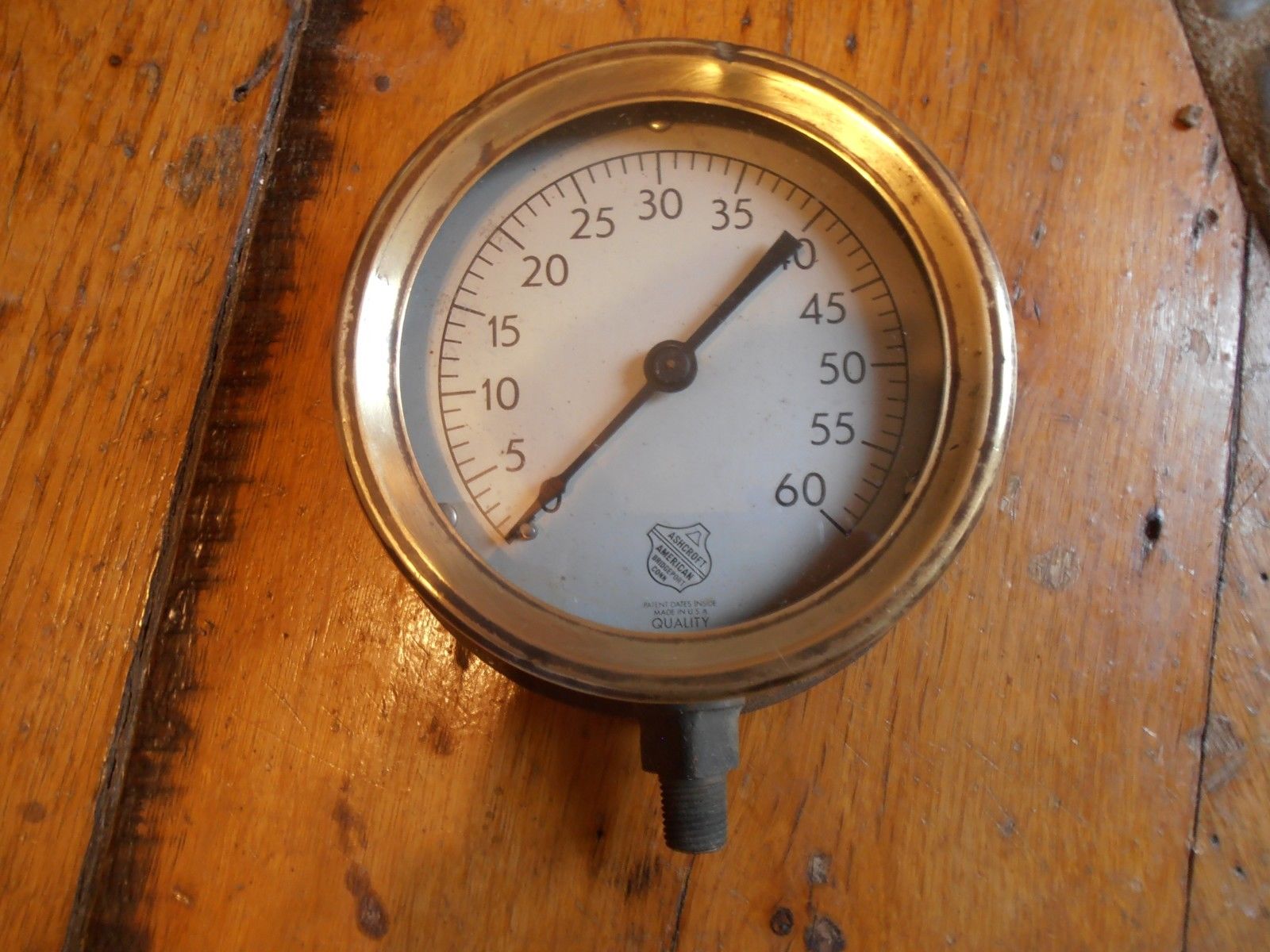 Title (ebay affiliate link): ANTIQUE BRASS BEZEL ASHCROFT STEAMPUNK STEAM GAUGE 5"