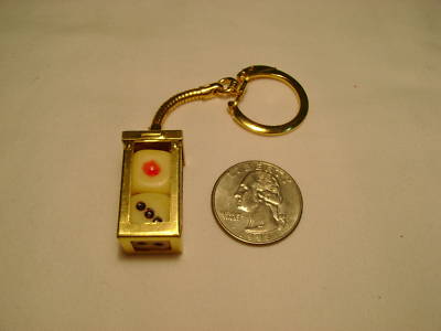 VINTAGE GOLD METAL BOX DICE MAHJONG keychain HOLDER NOS