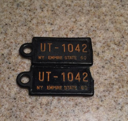 Vintage License Plate Key Tags DAV 1960 New York UT-1042 (Pair)