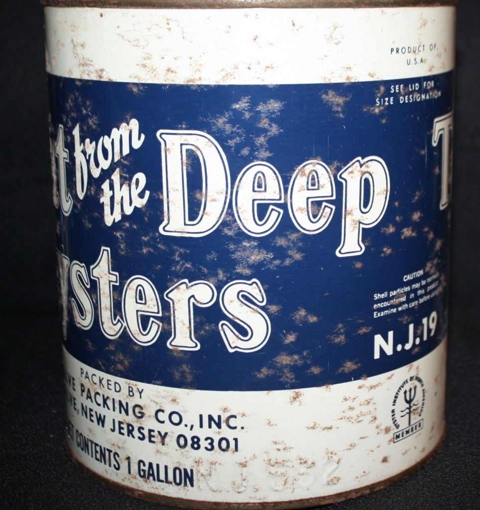 Title (ebay affiliate link): VINTAGE TREAT FROM THE DEEP OYSTER GALLON TIN CAN PACKER NJ 19