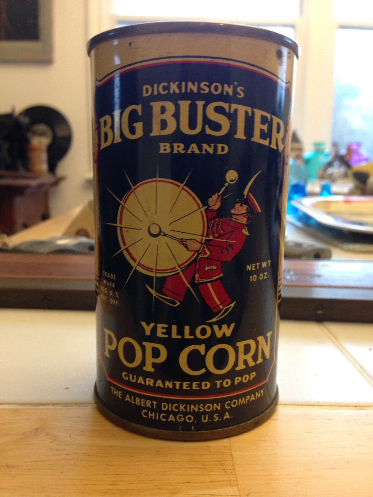 BIG BUSTER POP CORN ADVERTISING TIN excellent condition