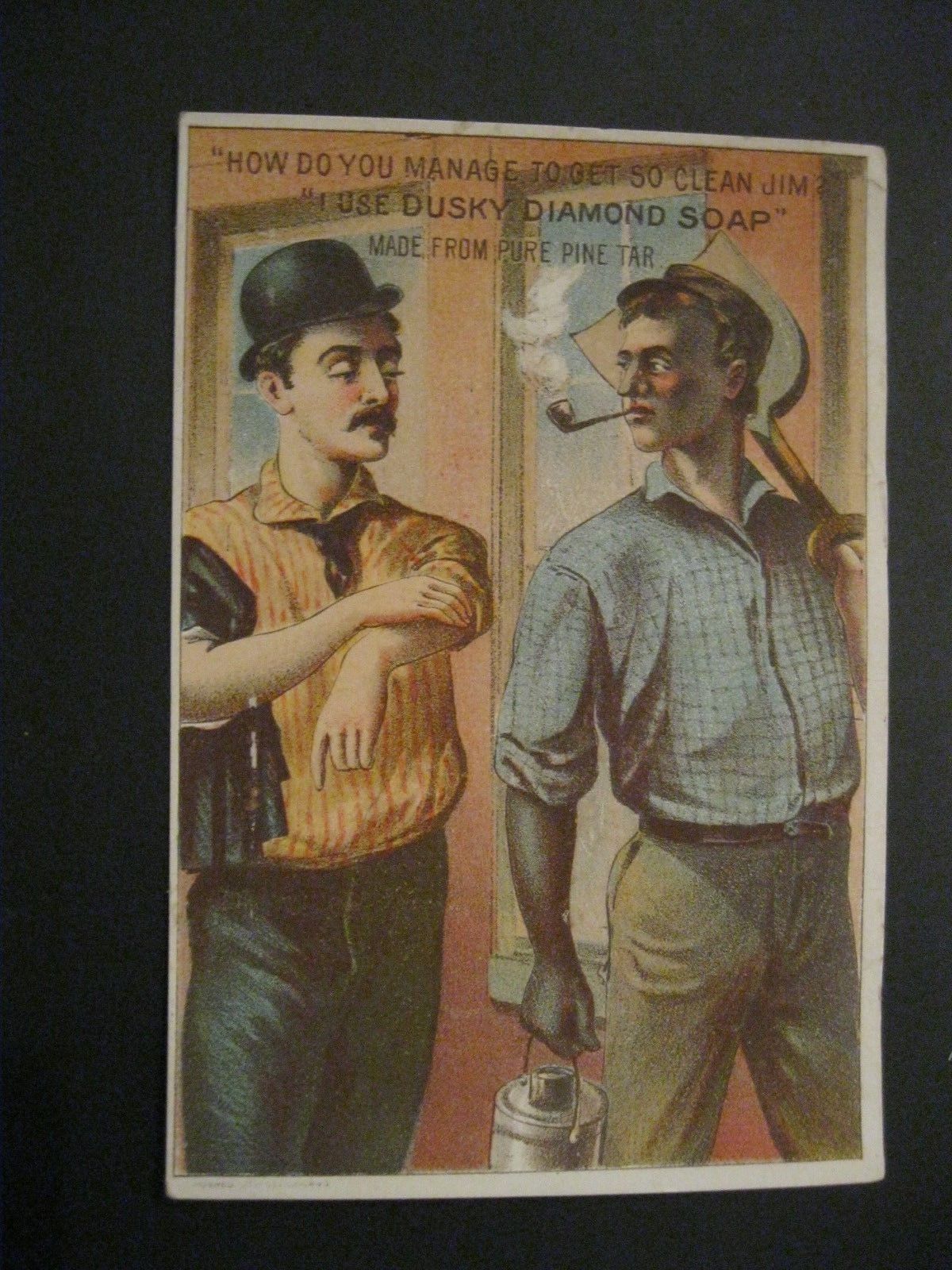 Victorian Trade Card RARE Dusky Diamond Soap Workers Smoke Pipe Pine Tar 56