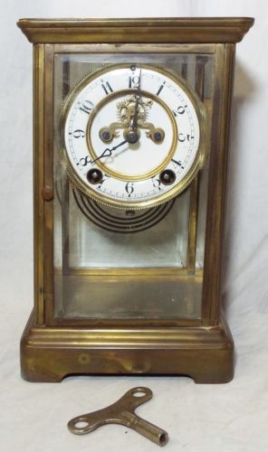 Title (ebay affiliate link): Old Antique NEW HAVEN Brass & Beveled Glass Mantle Shelf CLOCK w/ Key