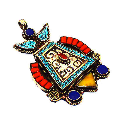 Title (ebay affiliate link): Turquoise Coral Lapis Antique Pendant Tribal Nepali Jewelry Gifts 8x5