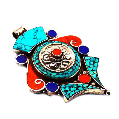 Title (ebay affiliate link): Turquoise Coral Lapis Nepali Pendant Tribal Antique Jewelry from India 8.5x7