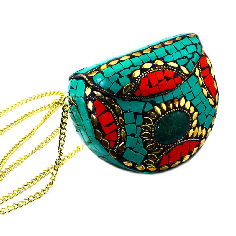 Title (ebay affiliate link): Turquoise Coral Lapis Antique Purse Ancient Nepali Wedding Jewelry