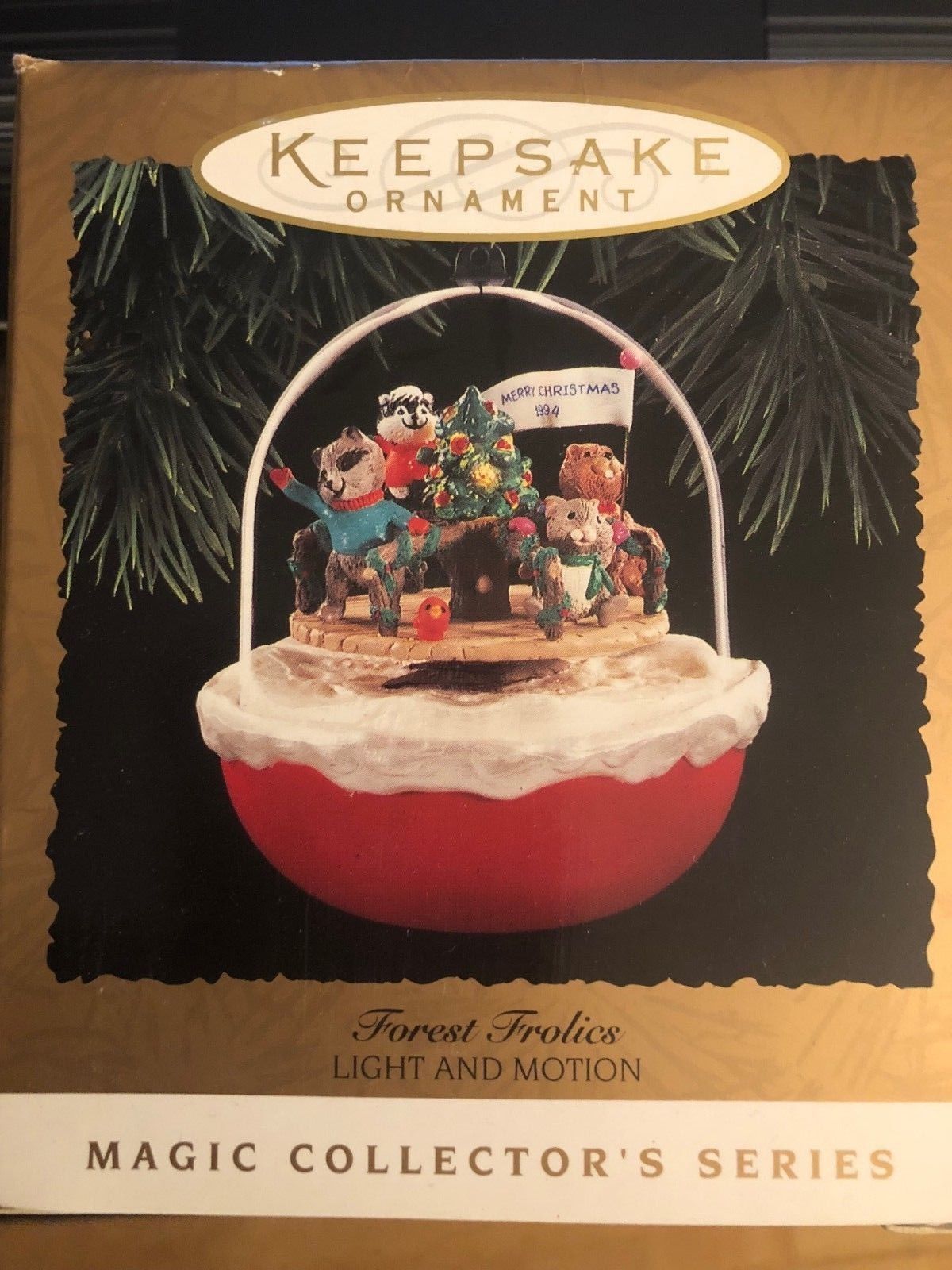Title (ebay affiliate link): HALLMARK KEEPSAKE FOREST FROLICS LIGHT AND MOTION ORNAMENT