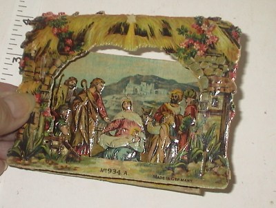German 3D Die Cut Scrap Manger Nativity Antique