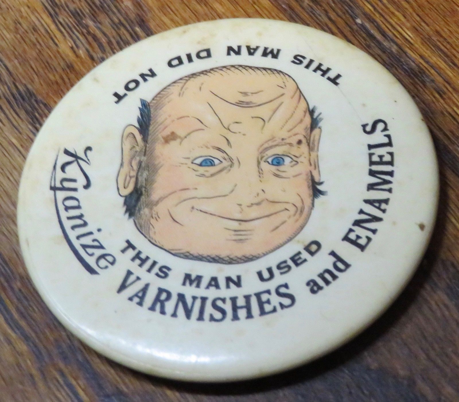 Kyanize paint varnish advertising 2 way upside down celluloid pocket mirror