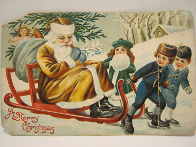 Title (ebay affiliate link): ANTIQUE- SANTA CLAUS POST CARD- GOLD COLORED COAT & HAT