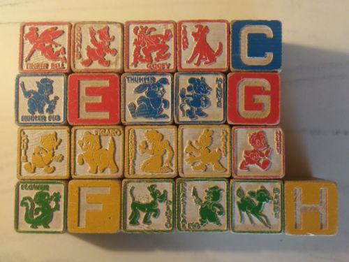 Title (ebay affiliate link): 21 Antique Wood Disney Building Letter Picture Number Blocks Alphabet Toy!