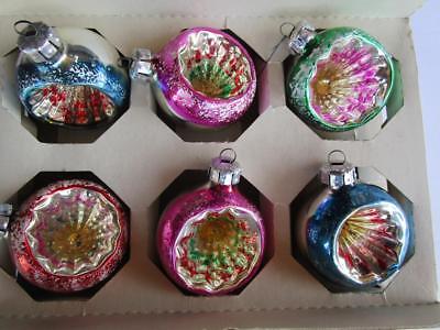 Vintage East Germany Colorful Glass Indent Christmas Ornament lot of 6