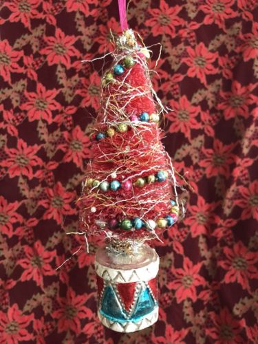 Title (ebay affiliate link): Vintage Mercury Glass Garland & Drum Bottle Brush Tree Christmas Ornament