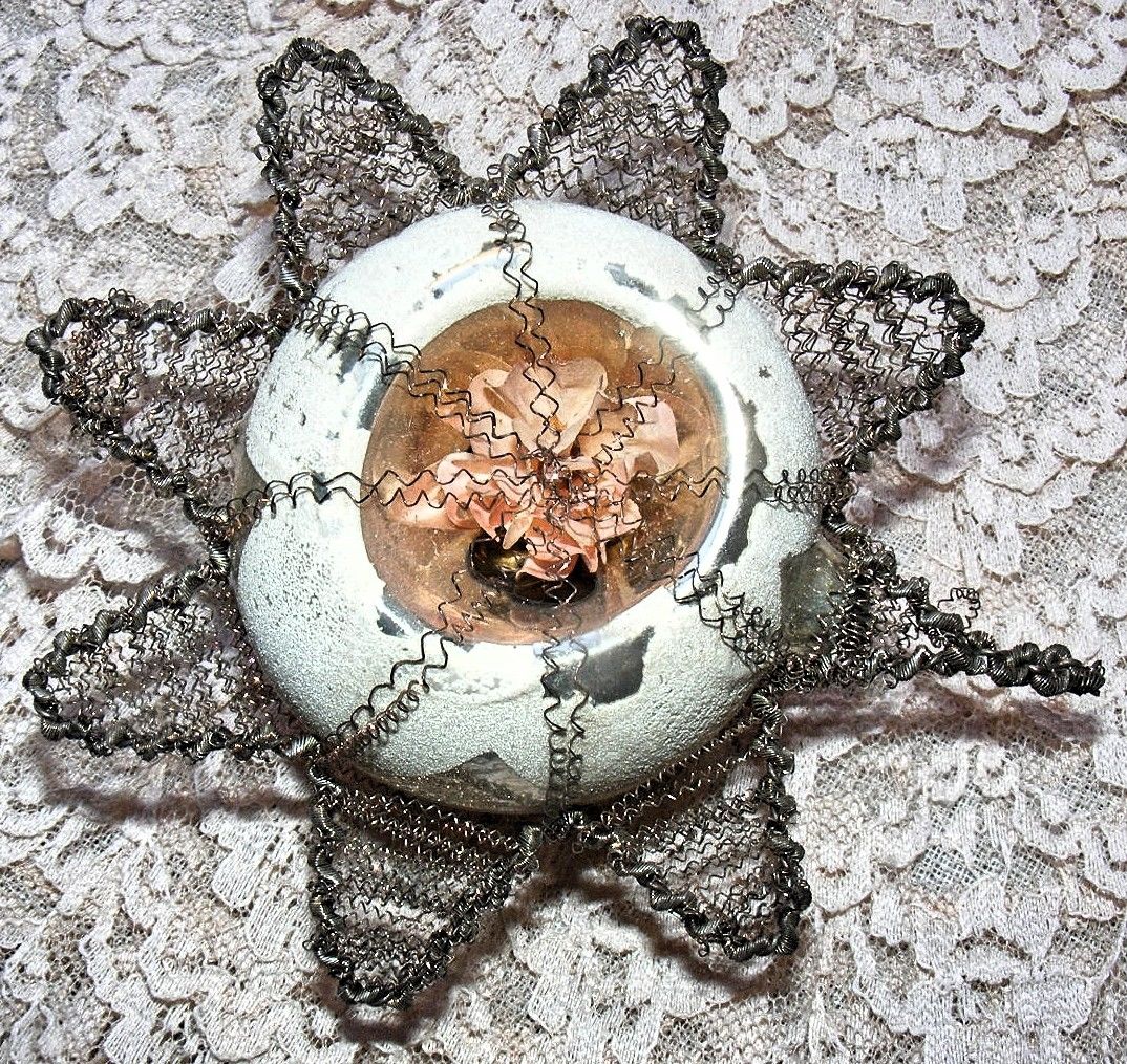 Title (ebay affiliate link): Antique Mercury Wire Wrapped Star Indented Pink Flower Christmas Tree Ornament