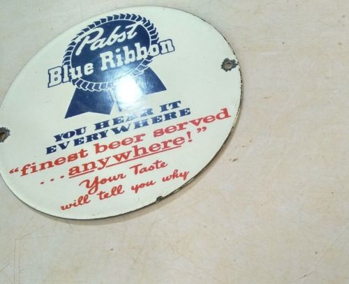 Porcelain Pabst Blue Ribbon Enamel sign 6" Inches Round