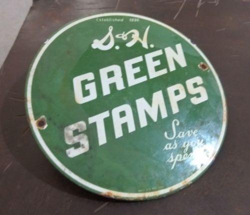 Porcelain S & H Green Stamps Enamel sign 6" Inches Round