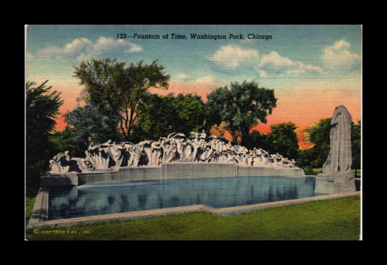 DR JIM STAMPS US LINEN POSTCARD FOUNTAIN OF TIME WASHINGTON PARK CHICAGO