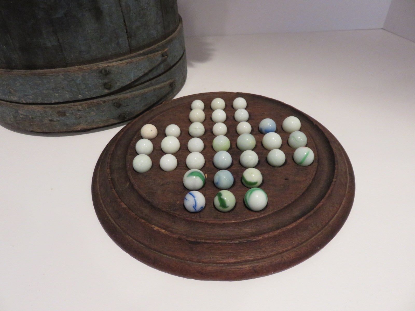 Title (ebay affiliate link): SMALL ANTIQUE WOODEN MARBLES GAME WITH MARBLES, AAFA