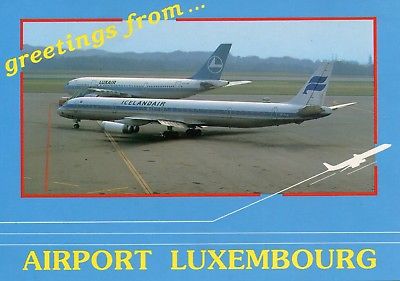 Title (ebay affiliate link): Aircraft Postcard - Luxembourg Airport - Icelandair DC-8 & Luxair A300