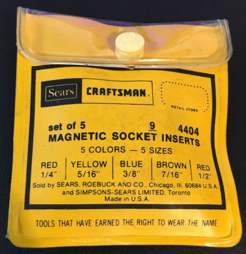 Title (ebay affiliate link): Sears Craftsman Set of 5 Magnetic Socket Inserts 9 4404 USA