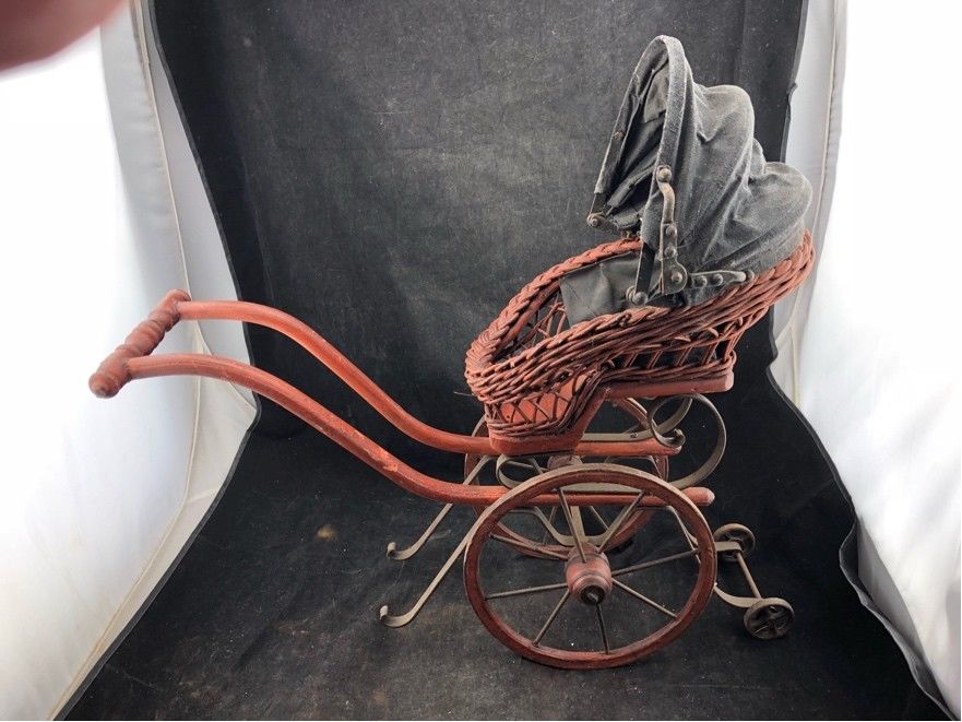 Title (ebay affiliate link): ANTIQUE VICTORIAN BABY DOLL CARRIAGE BUGGY WOOD METAL SCROLL CANVAS FOLD CANOPY